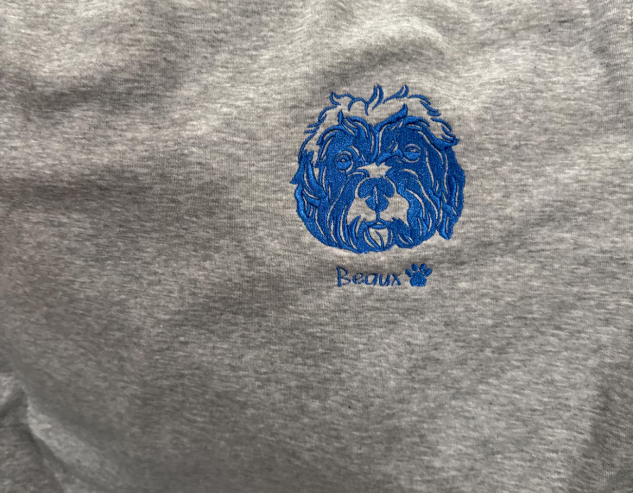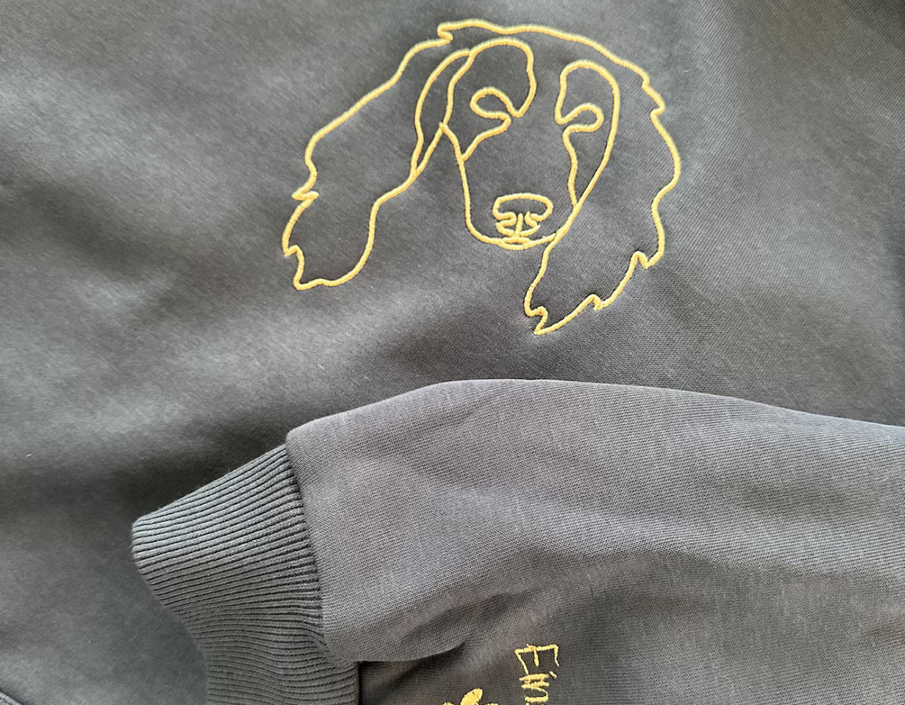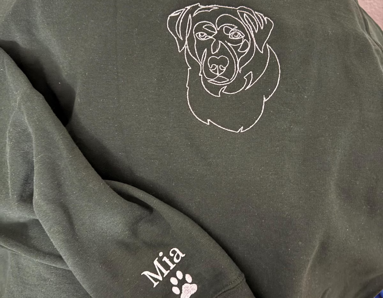 Wenn du deinen Hund nicht nur an der Wand, sondern auch am Herzen tragen willst, schau dir unsere personalisierten Hoodies mit Stickerei an – handgefertigt mit deinem Liebling als Motiv.