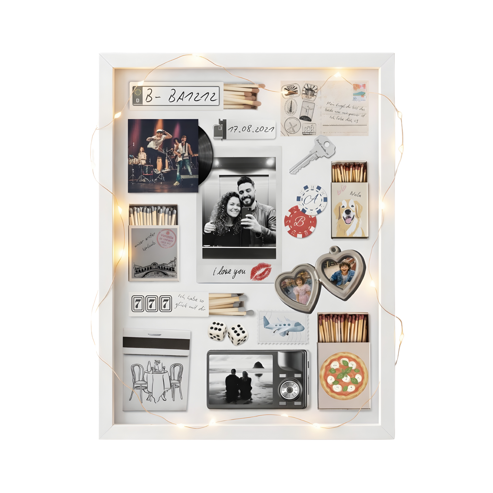 Aus euren Erinnerungen entsteht ein modernes, minimalistisches Kunstwerk im ikonischen Streichholzbrief-Stil. Namen, besondere Daten, Orte oder kleine Symbole werden zu einer liebevoll gestalteten Komposition, die eure Geschichte erzählt .